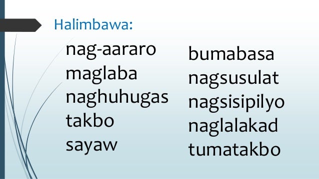Maaaring tao o bagay ang aktor. Mga Aspekto ng Pandiwa. Log Out Change You are commenting using your Google account.