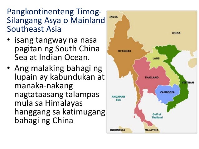 Napaghahambing ang kalagayan ng kapaligiran sa ibat ibang bahagi ng Asya 4. Pisikal at kasaysayang aspeto 11Ang Timog-Silangang Asya ay nahahati sa dalawang subregions ang. 19062014 KATANGIANG PISIKAL NG MGA REHIYON SA ASYA.