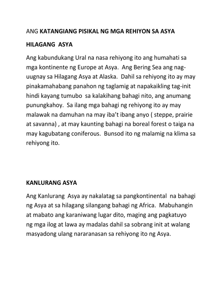 Ang Katangiang Pisikal Ng Mga Rehiyon Sa Asya Pdf